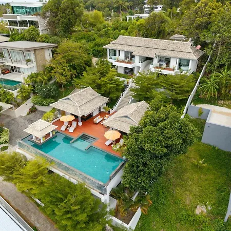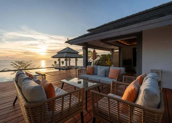 Situated 4.3 km from the scenic Mae Haad Beach, the 4-bedroom Luxury Villa Seaview & Sunset 100M From The Beach Ko Pha Ngan invites guests to relax at a patio.